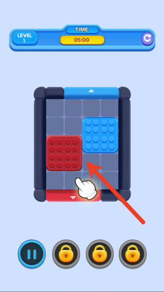 3、您可以用手指直接拖动屏幕上任意一个彩色方块,让它沿着您规划好的路径上下或左右移动,逐步朝着目标大门的方向推进。