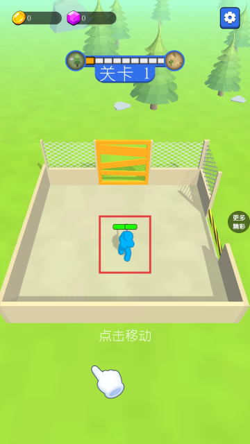 1、进入【关卡1】,通过滑动屏幕操控蓝色角色移动,为接下来的挑战做好准备。