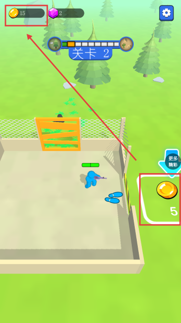 3、进入【关卡2】后,操控角色移动至白色框选区域附近,就能消耗5个货币来对避难所进行扩建。