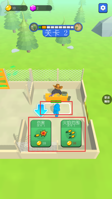 4、在新建的避难所里,我们能够对武器进行升级,无论是【伤害】还是【火焰范围】都能提升,把武器强化后就去将僵尸彻底消灭干净吧。
