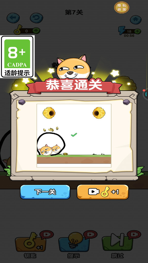 3、Q版狗头与蜜蜂的形象,再配上轻松的背景音乐,能让游戏体验变得更愉悦。