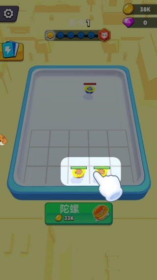 2、用初始金币购买基础陀螺,先熟悉通过点击屏幕来完成合成的操作,再试着把两个相同的基础陀螺合并,借此掌握合成的流程与节奏。