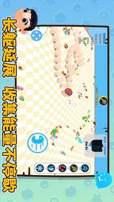 2、利用收集到的道具来助力闯关获取高分,比如通过加速冲刺躲避危险,或者用磁铁吸附远处的美食。
