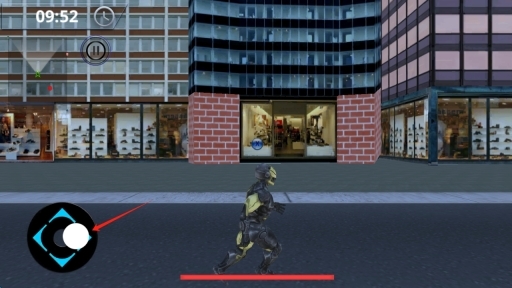 2、进入城市场景后,通过滑动左侧摇杆来操控角色移动,在城市中探索并完成任务,也可以拨动轮盘来移动人物。