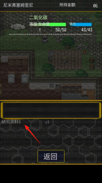 3、打开文件栏,找到“研究资料1”——这是获取到的道具。点击它查看介绍,了解关于怪物的研究内容,或许能解锁新功能或任务;后续还需收集更多资料,然后前往新区域进行探索。