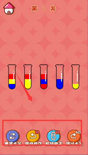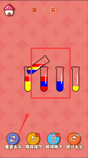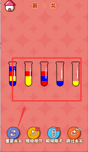 1、基础操作逻辑是,通过点击来选定源试管与目标试管,以此实现液体的转移。操作时要留意试管的容量限制以及液体颜色的分层规则。