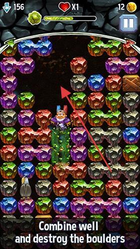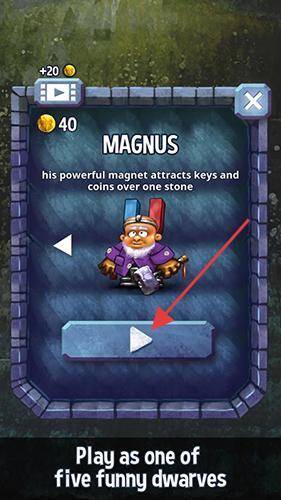 3、控制矮人在宝石堆里移动,借助消除宝石来获取金币与钥匙,以此增强角色的能力。