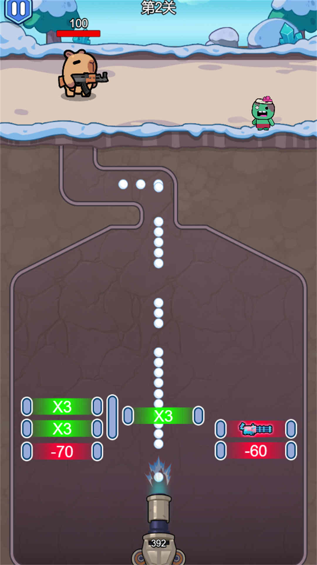 水豚冲击是一款竖屏玩法的策略闯关游戏。这次的冒险主角是一只可爱的水豚,我们需要帮助水豚获取更多的球球,来攻击关卡中的僵尸。通过移动屏幕底部的球球发射器,让球球能够穿越空间中的各种BUFF墙壁,来让球球数量增加,从而让水豚能够拥有更多的子弹来攻击僵尸。富有策略乐趣的玩法,让这次的水豚僵尸大战更加精彩!