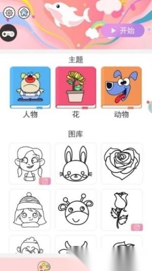 1.目前有人物、花朵和小动物这三个主题,你可以轻松地为它们上色,让你的画册变得越来越丰富。