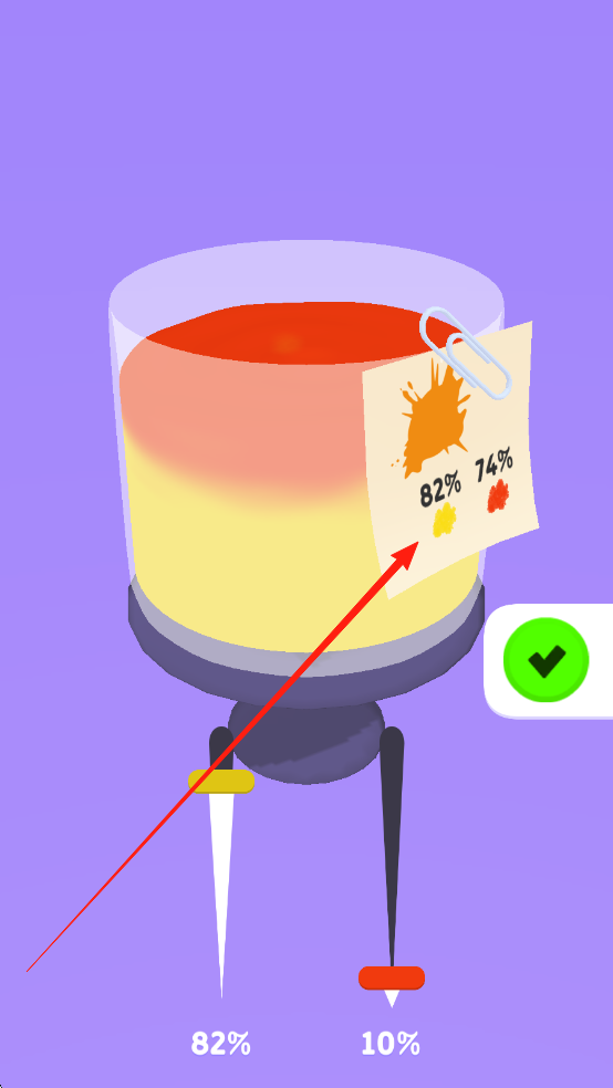 1、首先观察关卡里的目标颜色和可使用的颜料,预先判断混合的路径,接着点击屏幕来挑选颜料,滑动屏幕调整混合的比例,长按屏幕激活特殊效果。