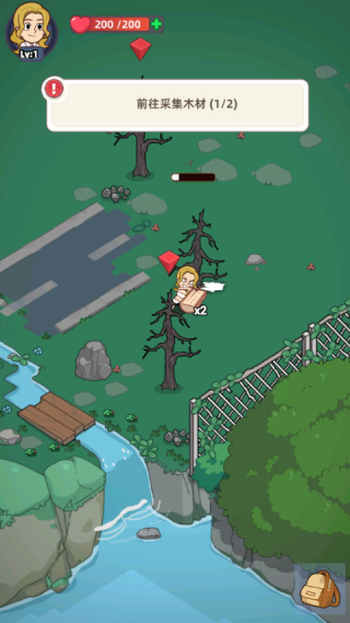 2、找到树木后即可开展砍树操作,玩家能够迅速获取木材,利用木材可以搭建房屋。