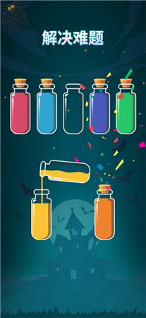 2、最后把所有相同颜色的液体分别倒入对应的同一个试管里,就能完成挑战了,操作起来十分简单。