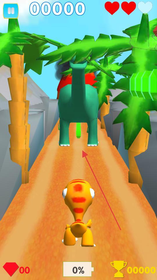 进入关卡后,操控小恐龙顺着道路往前走,注意前方出现的小怪兽,及时调整小恐龙的移动方向来避开碰撞,另外也要留意周围的植物和地形,确保能一路顺利前进。