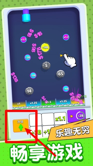 1. 点击升级速度:点击右下角的速度按钮能够提升速度等级,使下落频率加快,从而让收益更快翻倍,游戏节奏也会变得更快速、更刺激。