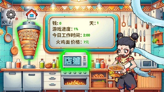 沙威玛传奇的同人衍生作品——超级火鸡面,在原作基础上加入了“魔童-哪吒”这一角色,玩家可以沉浸式体验火鸡面从食材挑选、烹饪加工到最终售卖的完整流程。游戏的背景设定在一个充满生机与活力的小镇,玩家需要负责接待前来光顾的顾客,妥善管理店铺的日常运营事务,同时通过对各类食材的巧妙搭配组合,制作出具有独特风味的专属火鸡面。