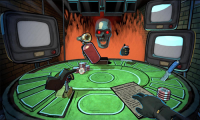 1、进入轮盘对决游戏后,你会发现自己身处一间酒吧的厕所中,随后将进入一个房间,与恶魔展开轮盘赌局。