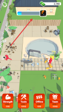 3、持续破坏场景里的物品、家具、建筑等以积累金钱,用这些金钱升级下方的功能,从而提高破坏效率和收益,推动关卡的进行。