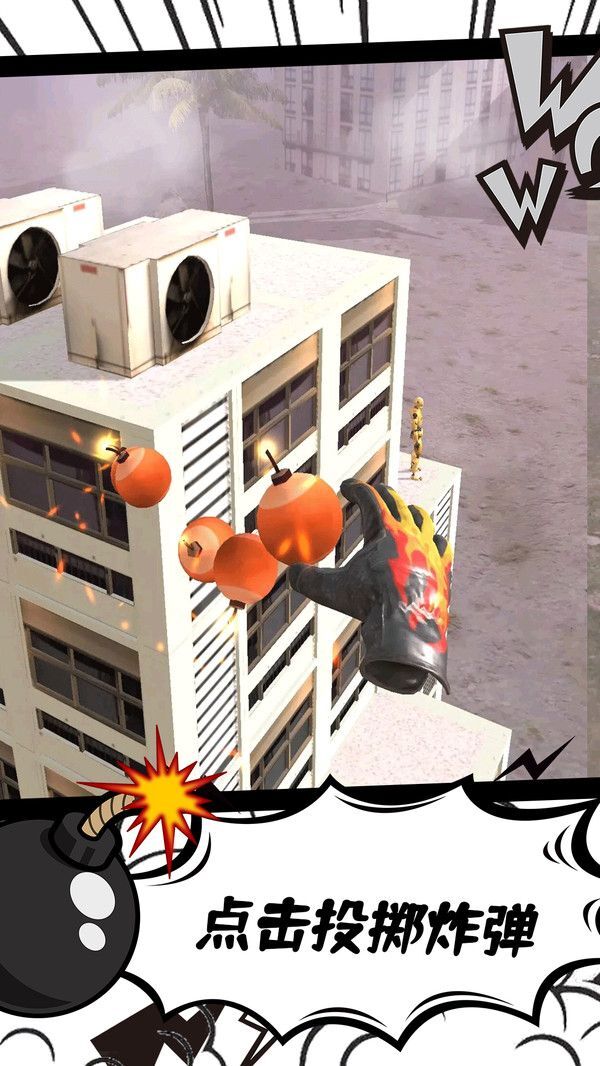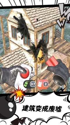 2、选好方向后,点击投掷破坏火药工具,玩家即可开展城市破坏行动。