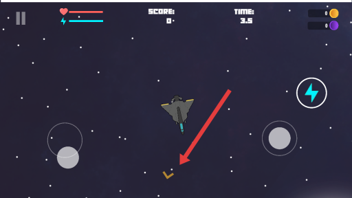在游戏过程中,需通过操控左侧的虚拟摇杆来调整战机的飞行方向,进而驾驶战机朝着黄色的引导标记飞去。
