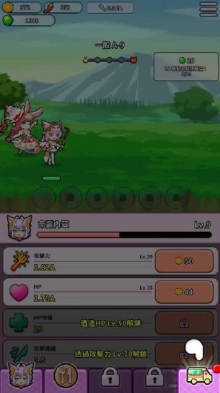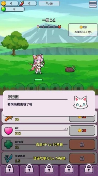 2、战斗时让她们自动与魔物对抗,你仅需在必要时释放技能或调整阵容。