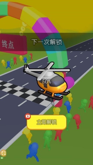 3、成功通关后能够解锁新的关卡,随着关卡的逐步推进,赛道的难度会有所提升,障碍的类型也会随之增加,与此同时还有机会解锁直升机等更加强力的形态。