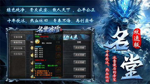 名堂冰雪为玩家打造了畅爽的冰雪版本传奇,各个大陆都设有丰富的副本与挑战内容。游戏内玩法种类繁多,地图规模也十分宏大,无论是加入行会、挑战怪物还是攻略副本,都能获取各类强化道具与丰厚奖励,助力玩家迅速提升战斗力至顶峰,尽情畅游整个游戏世界。