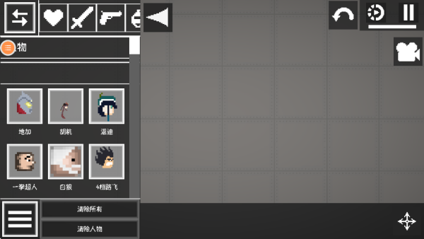 5. 点击画面左侧的菜单栏,把里面的角色、武器道具等拖拽到地图外,就能自由编辑、尽情玩耍啦。