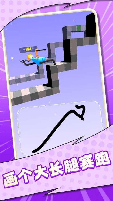 《画个飞毛腿》是一款充满创意的休闲跑酷游戏,游戏中玩家要为没有腿的方块小人画出双腿,助力它以最快速度越过重重障碍、奔向终点。游戏操作简便却很有挑战性,融合了物理模拟与手绘互动的玩法,能带来别具一格的闯关体验。快用你的创意和手速,带领方块人突破自我极限吧!