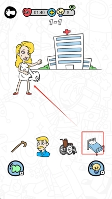 1、仔细观察当前场景,能发现有位孕妇情况紧急,急需前往医院就医。场景下方摆放着多种可用道具,你需要把病床拖动到孕妇身边,这样就能满足她前往医院的需求了。