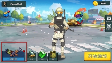 1、进入游戏主界面后,你可以点击武器库来挑选枪械,也能在阵营、技能、装备这些选项中进行相关设置,之后点击开始游戏即可。