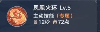 连续发动两次范围攻击,每次造成180%+644的火焰伤害;攻击会消耗被命中目标身上的凤火状态,同时火环对该目标的伤害提升100%;此外,命中目标还能减少技能冷却时间,冷却缩减上限为2秒。