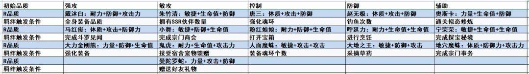 玩家在游戏前期可以自由强化魂卡,强化后支持回退操作,回退时会全额返还强化材料;即便强化的魂卡后续不再需要,等获取到所需魂卡后,也能先回退之前强化的魂卡,再用返还的材料强化新的目标魂卡。下图展示了魂卡达到SSR品质后的属性详情,以及魂卡羁绊的触发条件,魂卡的属性构成依次为四维属性、基础属性与羁绊属性。