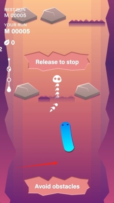 2、在跑酷界面中,根据“Release-to-stop”和“Avoid-obstacles”的提示,灵活地操控角色,避开各种障碍。