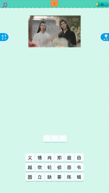 2、接下来会展示一张图片,大家需要根据这张图片猜测对应的电视剧名称,并从下方给出的字中进行选择。
