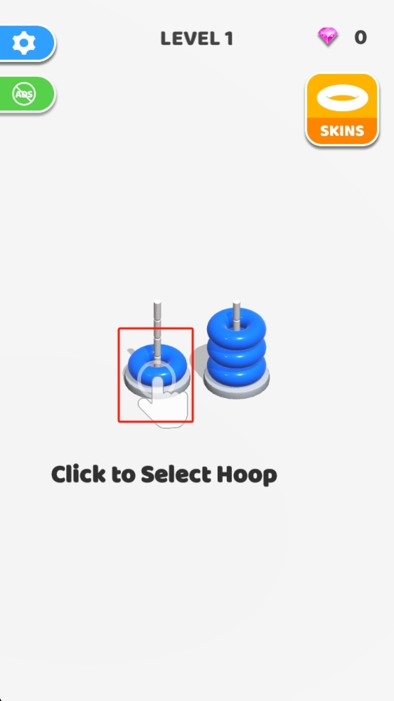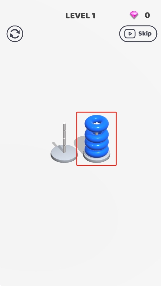 1、环圈归位操作:先点击选中要移动的环圈,再拖动到目标立柱位置,移动过程中必须遵循“大环在下、小环在上”的规则,借助临时立柱作为中转,逐步把相同颜色的环圈汇集到同一根立柱上,以此完成初步的排序任务。