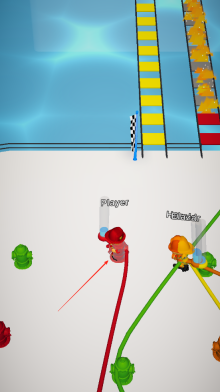 1、四名玩家每人手持一把水枪,我们得去触碰那些未上色的消防栓,把背后的水桶装满水后,再背着水桶登上消防梯去灭火。