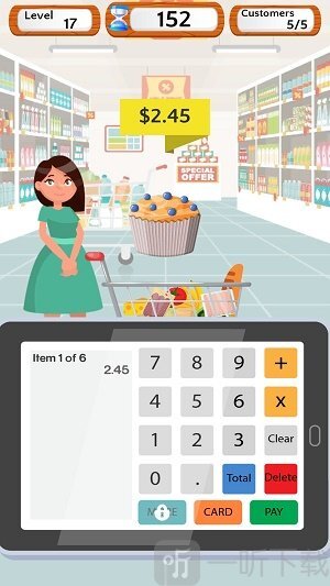 这款游戏拥有超真实的模拟体验与超精美的画面,能为用户带来出色的视觉享受。游戏聚焦超市购物后的结账环节,让玩家亲身感受这一流程:每件商品价格固定,玩家需要动脑为顾客计算金额,力求让每位顾客都满意。此外,还有丰富多样的关卡等待玩家挑战体验。