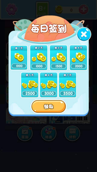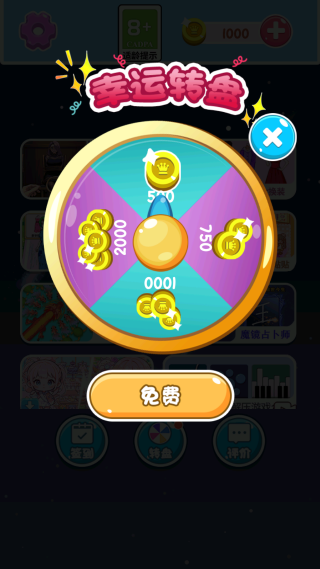 3、参与幸运转盘抽奖活动,能随机赢取若干金币,这正好可以检验一下你的运气好坏。