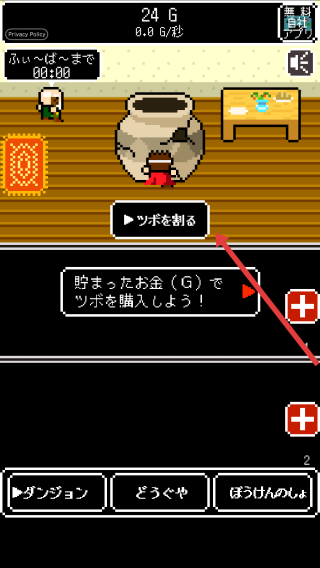 3、面对罐子时,选择“ツボを割る”选项,消耗已积攒的金币来购买罐子,以此推进该互动玩法的流程。