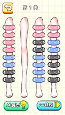 4. 就像下面图片展示的那样,我选了丝袜排序的模式,这个关卡的要求是把颜色相同的丝袜放到同一条腿上。