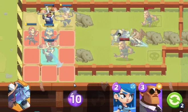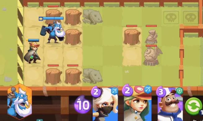 每次会随机生成三张英雄卡,要是你把当前的三张用完了,或者对它们不太满意,都可以选择刷新卡牌。
