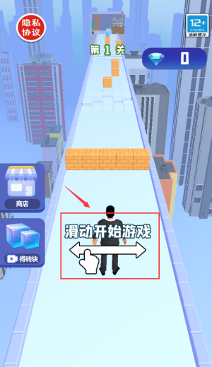 2、滑动屏幕即可开启跑酷之旅,你需要灵活躲避各种障碍,同时收集砖块,以此来完成关卡的挑战任务。
