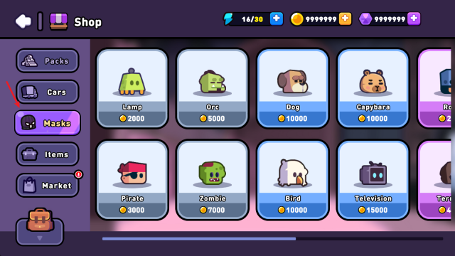 2、接着找到Masks这一栏,这里有不少皮肤可供购买。