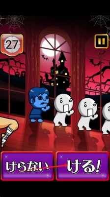 2、游戏里,在限定时间内快速点击“ける”按钮,就能让僵尸踢飞目标来获取高分,点击即可踹飞僵尸。