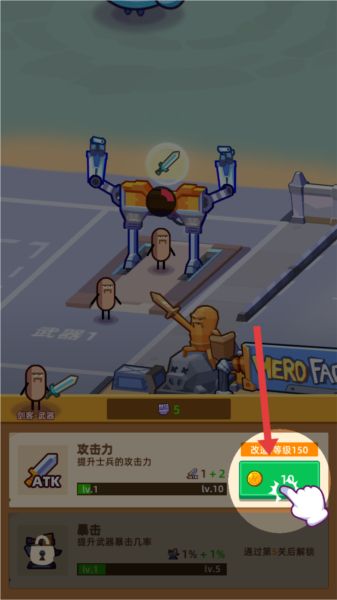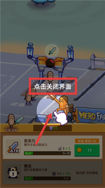 1. 进入游戏后,按照提示点击士兵脚下的光环,即可打开升级界面。