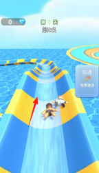 3、界面元素包含加速按钮(需免费激活)与钻石数量(当前为0);玩家可通过参与比赛积累成绩,以此提升排名,进而解锁新角色和滑梯赛道,尽情体验水上竞速的乐趣。