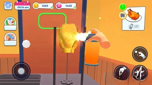 2.操作简便易懂,玩家既能通过拖拽、点击、翻转等动作来完成烹饪,也可以随意丢弃锅碗、倾倒辣椒酱、干扰客人,甚至能让厨房沦为一片“混乱景象”。