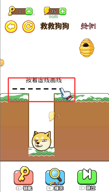 3、进入游戏后,根据要求划线,拯救小狗。