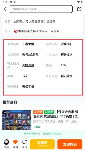 3、你可以根据自身需求任意挑选一款所需的游戏账号,直接点击“立即购买”按钮就行。