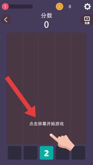 2、当前界面未显示分数,玩家可依据文字提示点击屏幕启动游戏,玩法规则为:需将方块弹射出去。
